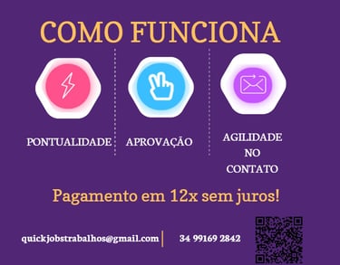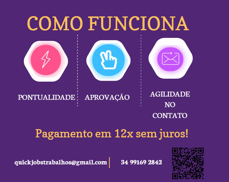 A equipe Quick Jobs é composta por profissionais amplamente qualificados, pós-graduados e mestres nas mais variadas áreas do conhecimento para auxiliar o aluno em suas dificuldades.